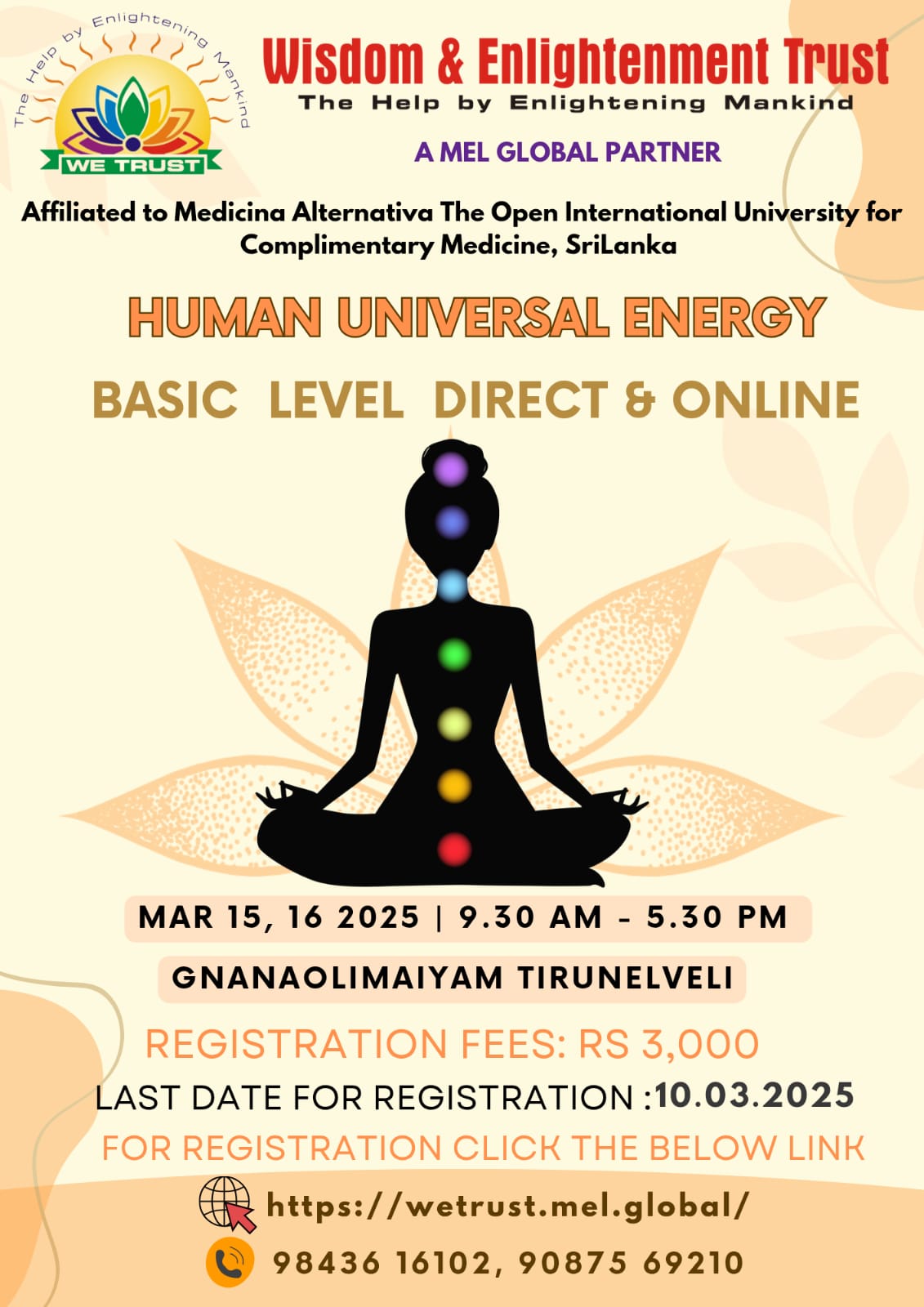 WE Trust : The Basic Level (Grade 1) of the HUE method, by Master Luong Minh Dang, is scheduled to take place on 15 & 16 March, 2025. at Gnanaolimaiyam, Tirunelveli. For details, Contact +91 98436 16102.