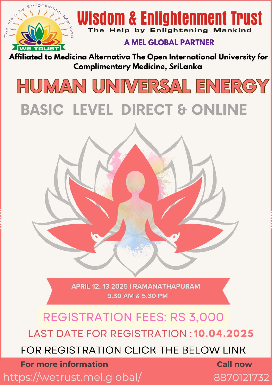 WE Trust : The Basic Level (Grade 1) of the HUE method, by Master Luong Minh Dang, is scheduled to take place on 12 & 13 April, 2025. at Ramanathapuram. For details, Contact +91 88701 21732.